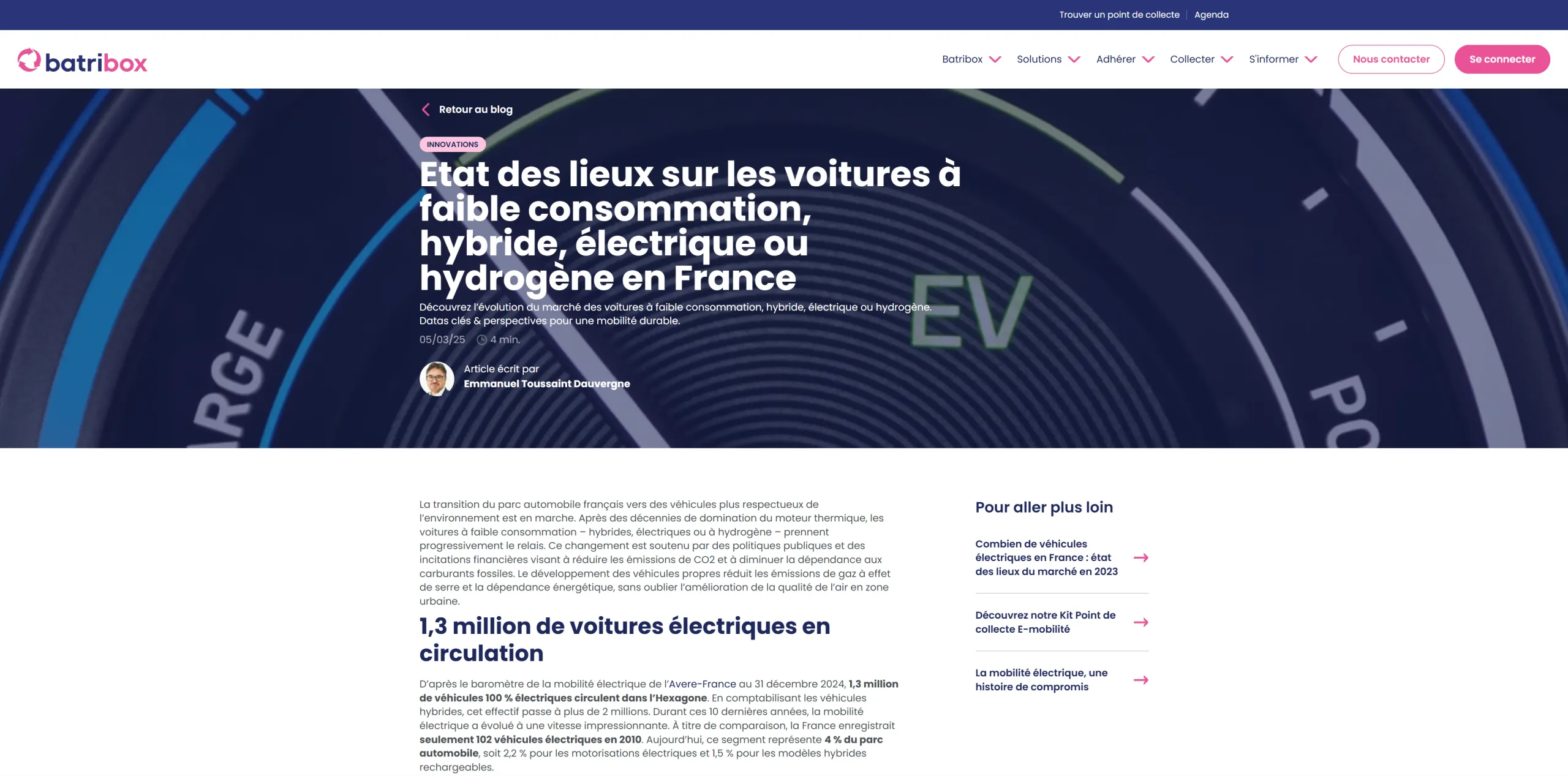Nous avons également produit du contenu pertinent pour leurs blogs (screlec.fr et batribox.fr) et respectant les bonnes pratiques SEO, renforçant leur positionnement d’experts dans la filière du recyclage.